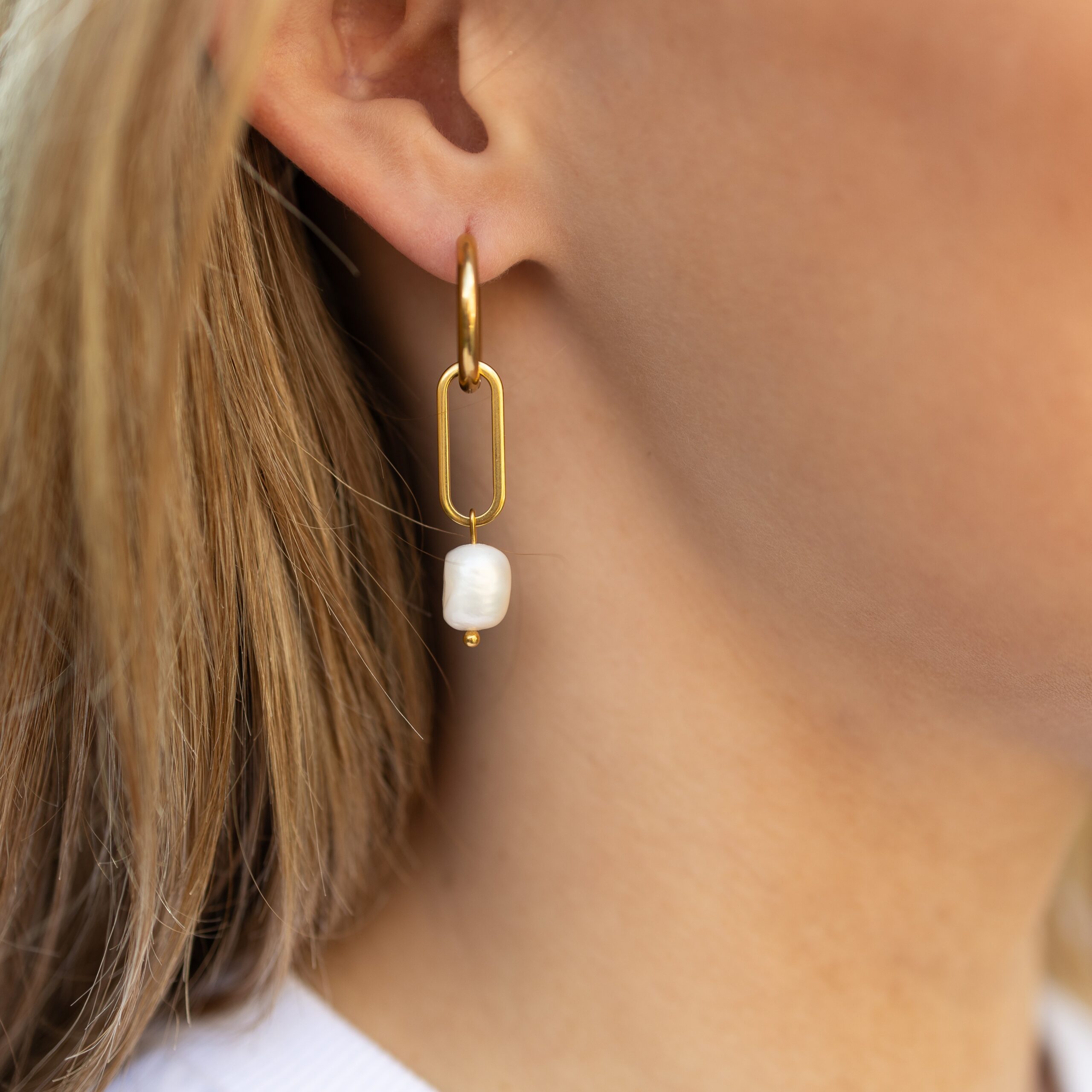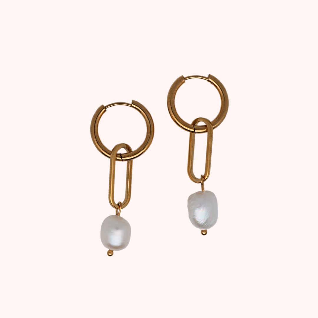 Deze oorbellen zijn gemaakt met echte zoetwaterparels.